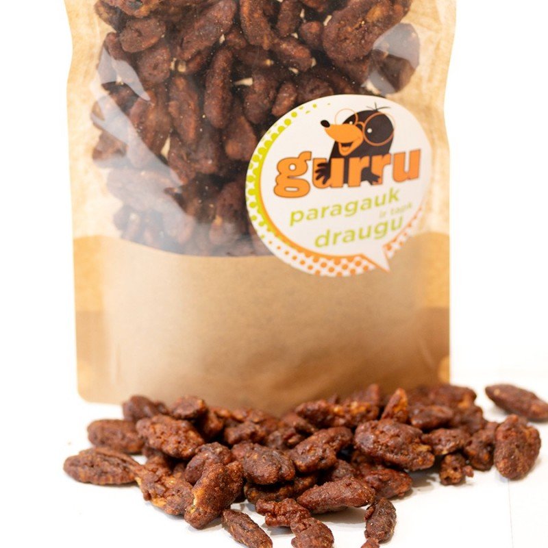 Savo asortimentą papildėme dar vienu išskirtiniu pasiūlymu. Abejingų nepaliekantys karališko skonio Pekano riešutai apvilkti traškaus saldumo plutele.