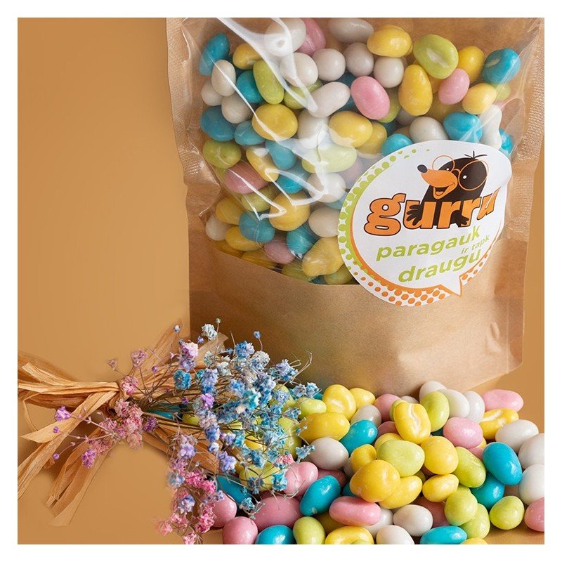 Skrudinti žemės riešutai traškiame spalvingame glaiste. Smaližiaukite kaip desertą arba puoškite kepinius.
