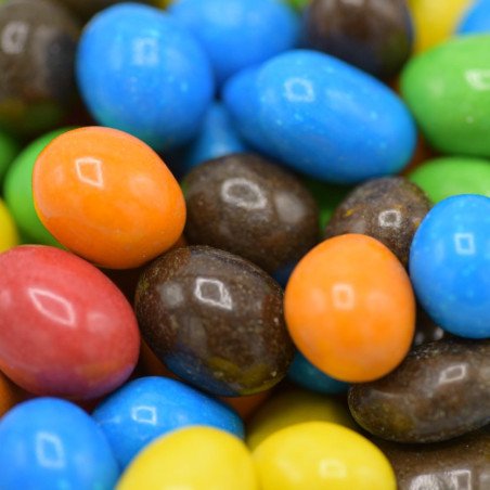 Žemės riešutai spalvotame pieniškame šokolade - tikras smaližių skanėstas, kuriam sunku atsispirti. Traškus žemės riešutas, aplietas spalvotu šokoladu, patiks ir mažiems, ir dideliems. O ir namie kepamą tortą su šiais spalvingais riešutukais papuošite išradingai.